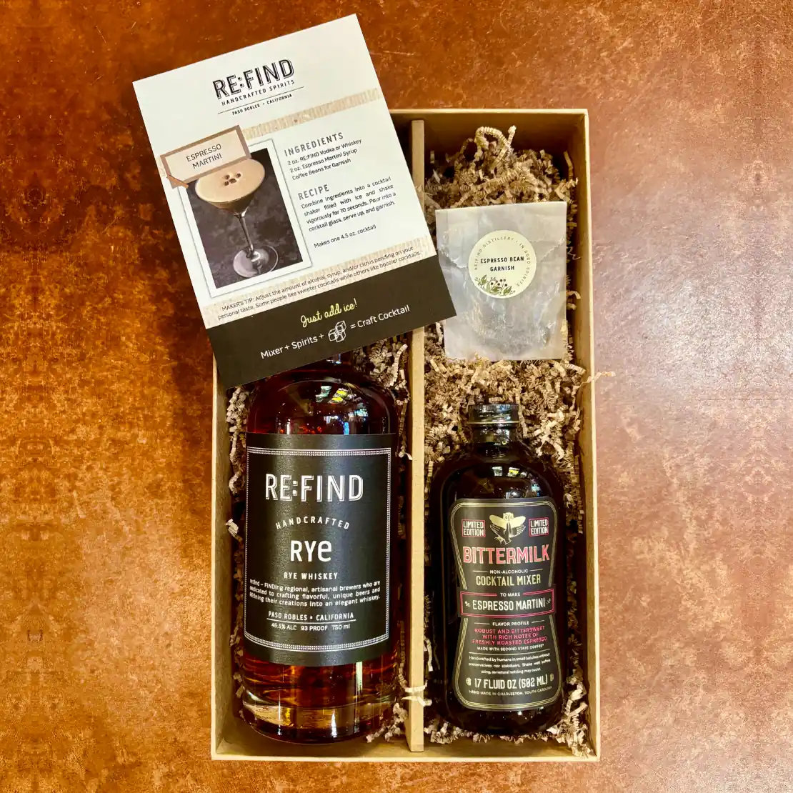 Includes: 1 - Your Choice of Re:Find Spirit (750ml) 1 - Espresso Martini Syrup (17oz.)1 - Coffee Garnish Pack1 - Recipe Card