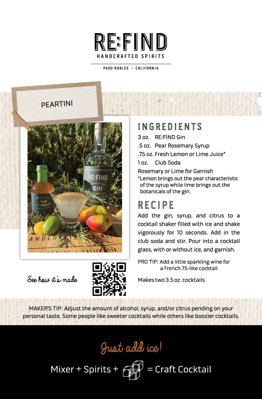 The sweet pear flavor combined with the aromatic rosemary makes for a refreshing cocktail in any season! Pairs well with gin, vodka or prosecco.